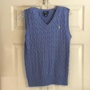 Polo by Ralph Lauren Cornflower Blue cable knit sweater vest, sleeveless, V neck,