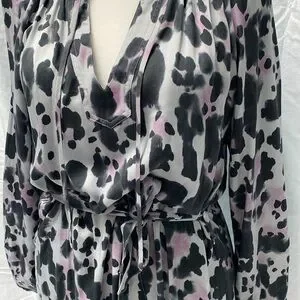 Stylish long-sleeve dress with a bold animal print. Features a flattering tie waist. Perfect for any occasion.