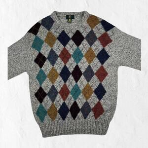 Gray Club Room Vintage Argyle 100% Wool Sweater