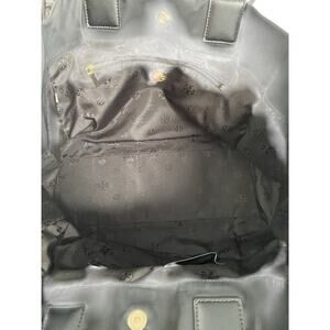 This Tory Burch Ella Tote is a stylish accessory for women. It features a solid black color, with accents of the brand's logo. The tote is made of a combination of nylon and leather materials, making it both durable and fashionable. It has double handles for easy carrying and is available in a size L. This tote is perfect for any occasion, whether it's a day at the office or a night out. Made in the Philippines, this tote is sure to add a touch of elegance to any outfit. The bag is in excellent condition, bottom is perfect, but two sides are scuffed.