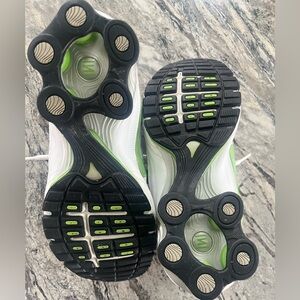 Smoke free pet friendly home. White and lime green Nike Shox. Size 8 women. Not used a lot - lots of life left in these.
