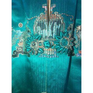 VTG 50's Golden Lotus at Waikiki Satin Embroidered Jacket Pockets Teal Boho Sz L
