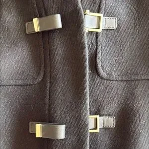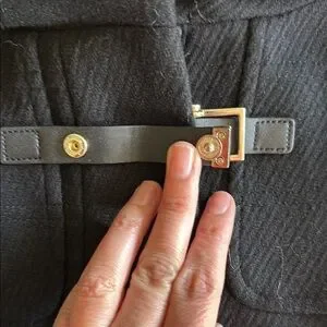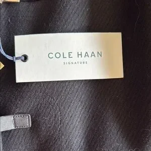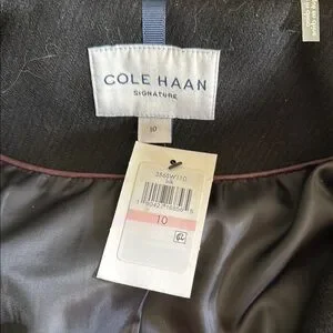 This stylish black pea coat from Cole Haan features a cozy faux fur hood that adds a touch of elegance. Its mid-length design ensures warmth during winter, making it a perfect choice for chilly days.