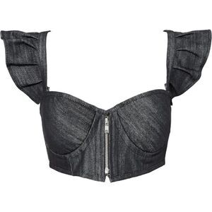 🆕️ Lavish XL Daisy Corsets black gray ruffled Denim Bustier shirt bra crop top
