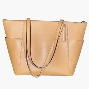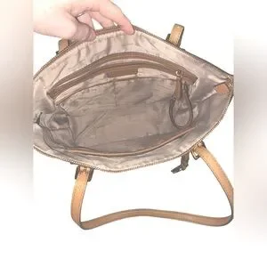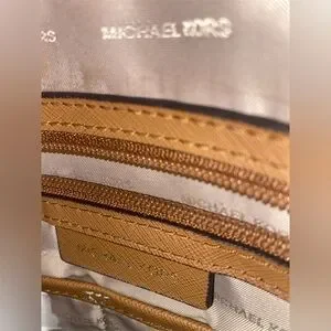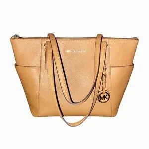Michael Kors Charlotte Tan/Brown Jet Set Saffiano Leather Top Zip Tote Handbag