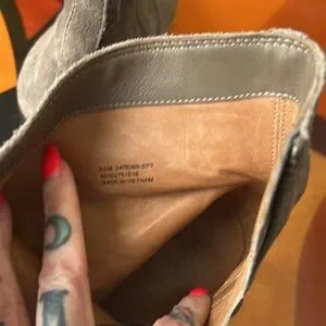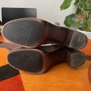 FRYE Joan Campus Suede Wood heeled ankle zip boot. Size 9.5 M Grey