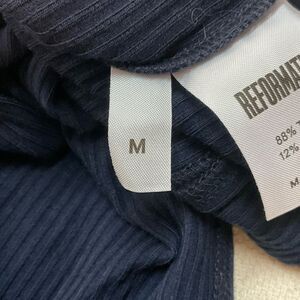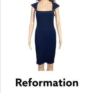 Reformation Navy Blue Ribbed Square Neck Knit Cap Sleeve Mini Shirt Dress M