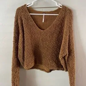 Free People women’s top. Brown/ Olive color. Cropped. Slightly shorter in the front and longer in the back. In good condition.