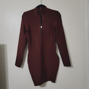 House of CB Marron Long Sleeve Bodycon Pencil Dress Smooth Spandex Size Large