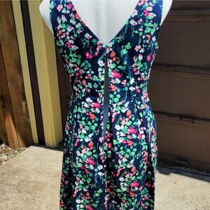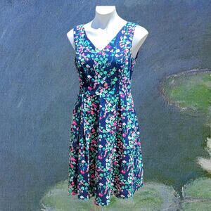 Women’s size 6 navy floral Fit & Flare sleeveless double V neck dress with pockets from Nine West