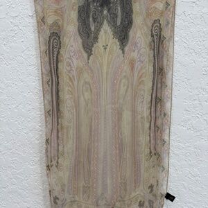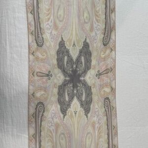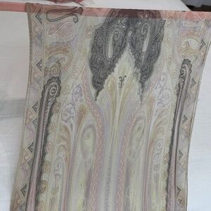 Sheer light pastel purple pink green and gray Etro silk scarf 44 inches long x 12 wide