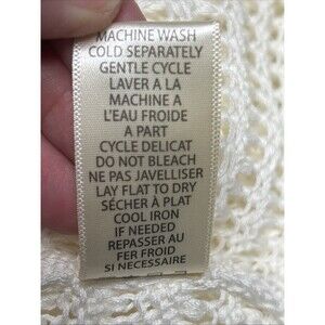 This is a stylish Max Studio London cream sweater in size Large for women. It features a chic V-neckline and an open weave design, adding a touch of sophistication to your outfit. The sweater is crafted in an ivory color, making it versatile to pair with various bottoms for a trendy look. Perfect for staying cozy and fashionable during cooler days, this pullover sweater with a London theme is a great addition to any wardrobe.