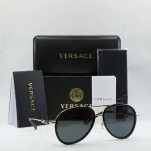 NEW VERSACE VE2260 100287 BLACK DARK GREY SUNGLASSES