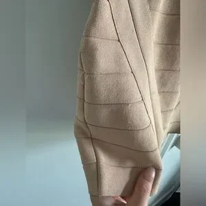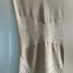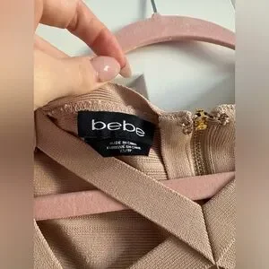 Bebe Off Shoulder Bandage Stretch Short Bodycon Mini Dress in Beige size…