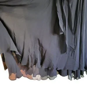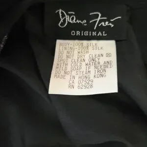 In a world of ordinary attire, this Diane Freis dress emerges as a tapestry of elegance and artistry. The vibrant, intricate beadwork blooms across a backdrop of luxurious black silk, telling tales of elegance and grace. With a flowing silhouette and a matching belt, it whispers sophistication with every movement.