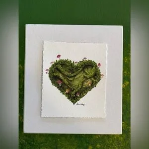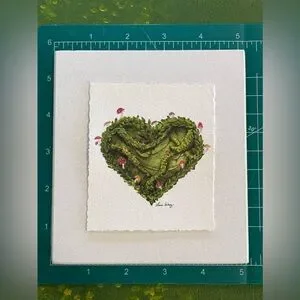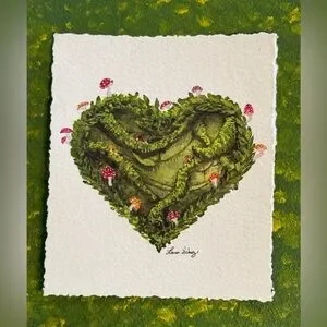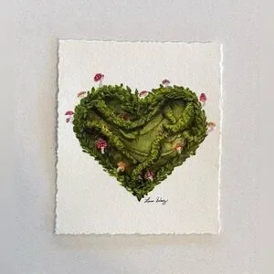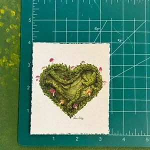Greenery, mushrooms and moss are illustrated in this heart shaped mini illustration. I wanted to make something valentines themed with display longevity.