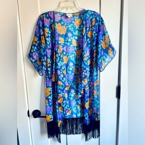 LuLaRoe Dolman Long Kimono Floral Fringe Top Blouse Lightweight Small