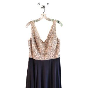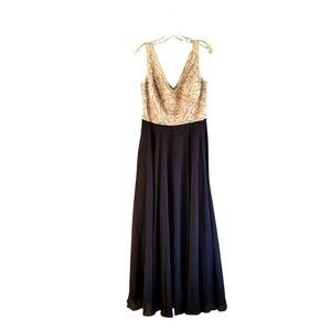 Aidan Mattox Elegant Beaded Evening Gown With V-Neck In Black & Champagne Size 1