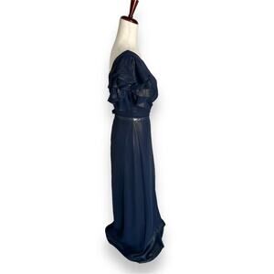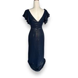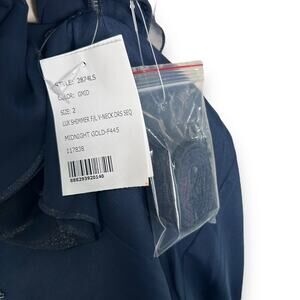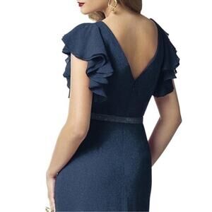 NEW Nordstrom Blue Gold Shimmer Gown Size 2 Flutter Sleeve Ruffle Metallic Dress