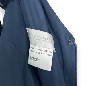Flowing and loose flutter sleeves with a pleated surplice bodice add movement and stgyle with each graceful stem in this shimmering gold and midnight navy formal gown from Dessy Collection.