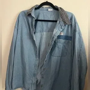 • Color: Light Wash Blue with Patterned Collar