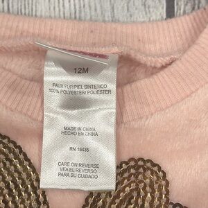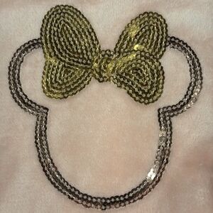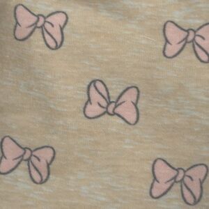 Adorable Disney plush sweatshirt with sequin Minnie Mouse silhouette design. Soft pink plush fabric. Matching cream leggings with bow prints.