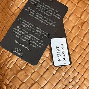 FALOR Made In Italy Leather Woven Tote - Cognac - NWT
