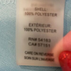 The blouse is machine washable and comes in a size XL.