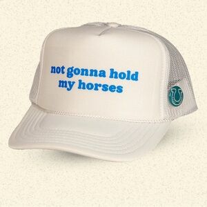 Trucker hat “not gonna hold my horses” - white and blue SnapBack