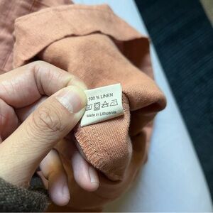 NOTPERFECTLINEN peach salmon pink linen elastic waist pleated high rise shorts