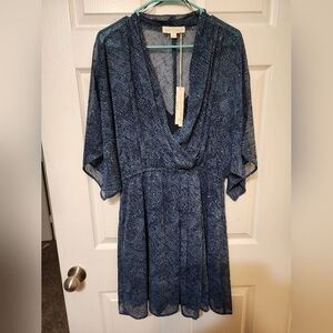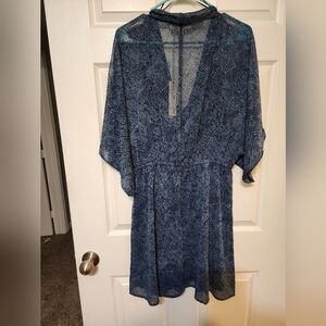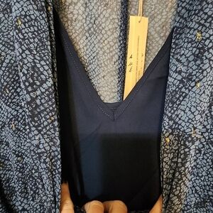 NWT. Gorgeous, lightweight dress by Lovestitch. Size large. Has elasticized waist But other than that, not much stretch. Lined with navy adjustable spaghetti strap top/skirt underneath. Beautiful sheer dresse with gorgeous sparkle detail. See photos. Fits me but a little more snug than I like. For reference, I'm 5 '7" and approximately 175 lbs.