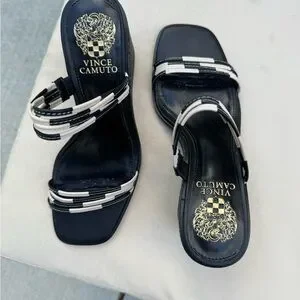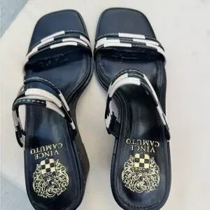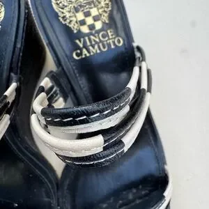 Step out in style with these Vince Camuto black wedge sandals. Perfect for any occasion, these shoes offer both comfort and elegance.