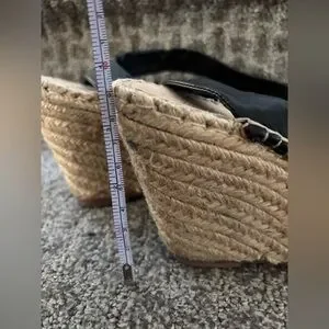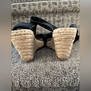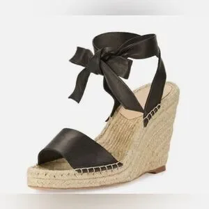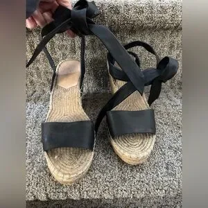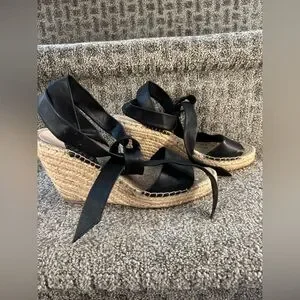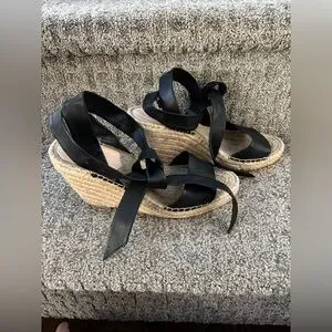 Loeffler Randall Harper Ankle Wrap Espadrilles. Black leather. Ankle wrap. Worn. No damages.