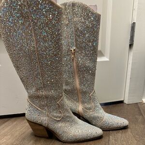 Gorgeous pair of rhinestone boots! They are in great condition. Only worn once to a concert.