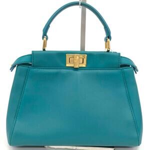 Fendi Teal Mini Peekaboo Bag Nappa Iconic Satchel Lago Teal Shoulder Handbag
