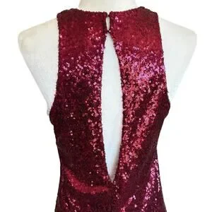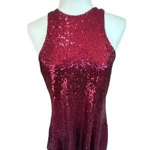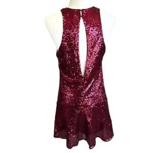Free People Halter Dress XS Red Sequin Liquid Shine Mini NYE Holiday Party Glam