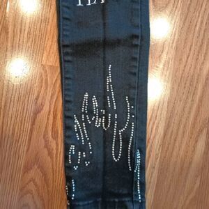 RUE 21 Love Hate Supreme Flex Rhinestone Deconstructed Black Skinny Jeans 26/30