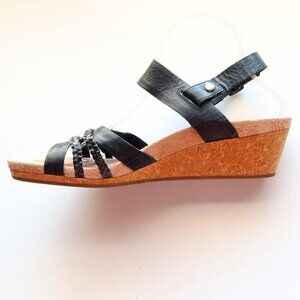 UGG Black Leather Cork Wedge Heel Open Toe Strappy Sandals Summer Shoes Size 12