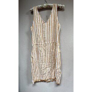 Anthropologie Drew Women's Striped Shift Dress Medium Drawstring Waist Yellow