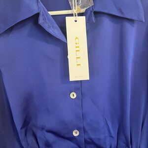 Gilli Blue Long Sleeve Shirt Dress with Bishop Sleeves. NWT