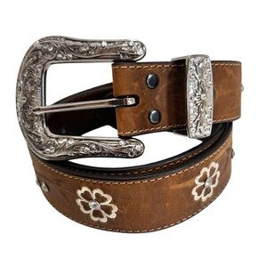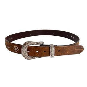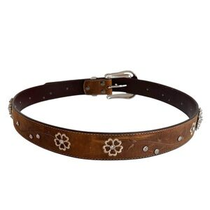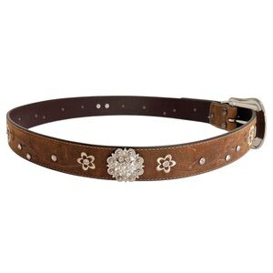 Ariat Womens Floral Stitch Berry Concho Distressed Leather Belt