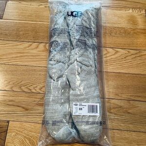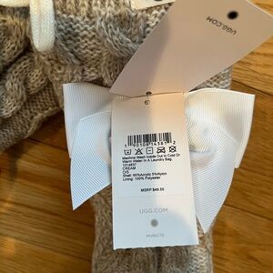 Cozy knit Ugg socks with white pom-pom details. Features a cute bow accent. Perfect for lounging. Can be worn with boots or as slippers. Brand new never worn. All tags still attached. Non smoking and pet free home. Bundle to save on shipping costs.