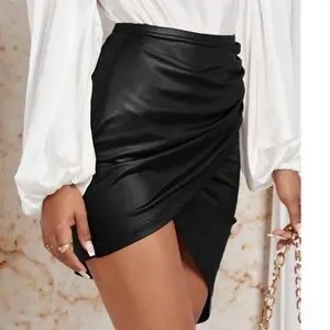 Luxe Black Vegan Leather Stretchy Waist Asymmetrical Mini Skirt