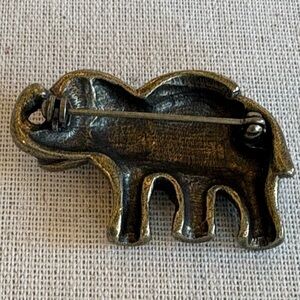 Gold tone elephant brooch pin with blue prone and bezel set rhinestones crystals. Unbranded. See photos for approximate measurements
