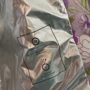 The absolute cutest puffer coat for winter / hitting the slopes! This is a collaboration between LoveShack Fancy and Fire + Ice. It has a gorgeous, fun purple floral pattern throughout, and the most fun silver lining on the inside. There are multiple zipper functions.