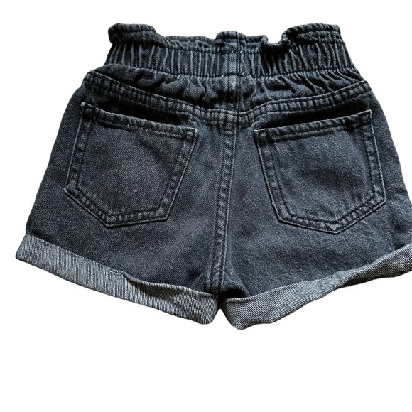 Girls 3t distressed black denim shorts, distressing on pockets.