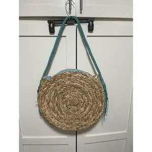 Sun N Sand Beach Bag Natural Straw round tote Blue NWT