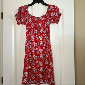 American Eagle womens red floral mini sun dress size medium.