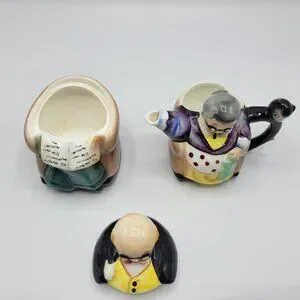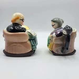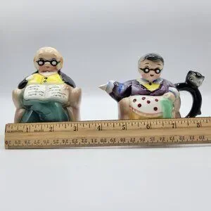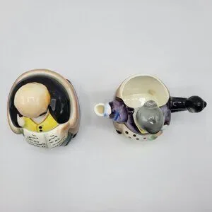 Vintage Hand Painted Japan Grandparents Creamer & Sugar Bowl Set