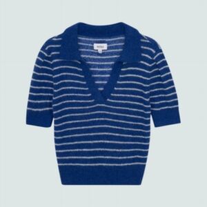 Stay stylish with this chic striped V-neck sweater. Perfect for any occasion, this blue and white sweater offers both comfort and elegance. purchased for a trip and only worn twice.